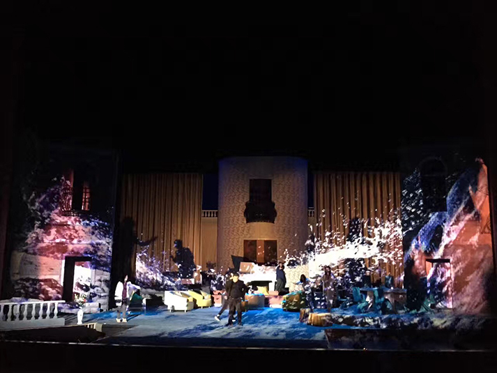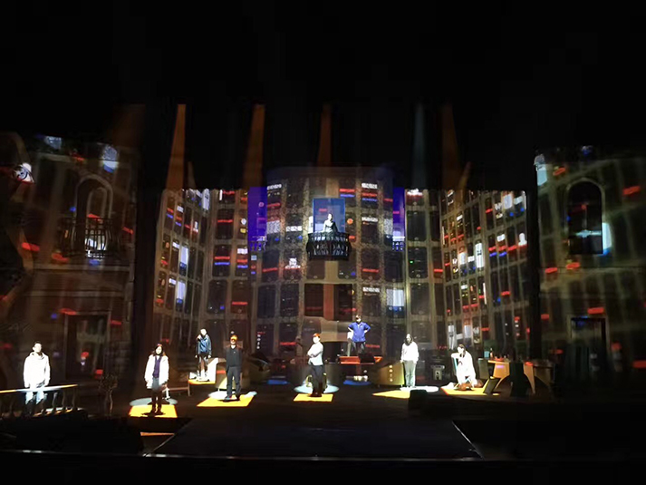 該劇有對人物靈魂的拷問、對人性的追問,也有對生命意義的表達,在雄渾凝重的燈光設計風格上,著重呈現劇目的人物塑造。該劇中,LED切割燈GL-6和LED圖案燈GL-5,承擔了劇目面光和舞臺特效的作用,憑借高亮度、均勻的光斑、全面的功能和穩定的運轉,成功為該劇護航。尤其是LED燈具在調光、頻閃上更加細膩線性的表現,有助于劇情傳達更加微妙細致的情感。另外,天幕燈C5的八色混色,讓色域寬廣、換色細膩,投光式渲染法使得效果均勻自然、一致性高,渲染劇場氣氛。