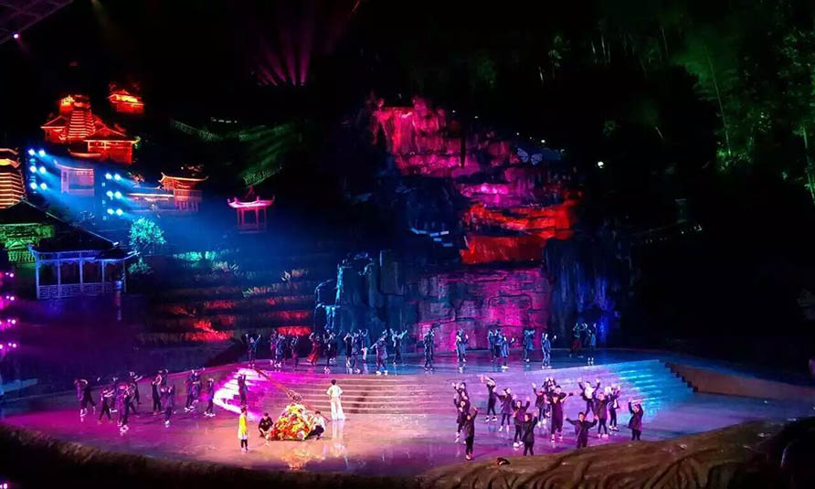 《薩瑪》以梵凈山下的侗族村寨、山水、竹海為背景,講述了發(fā)生在遠(yuǎn)古侗族山寨里女主角“薩瑪”身上的凄美愛情故事。靠山面水、高度潮濕的演出環(huán)境,對燈光設(shè)備的質(zhì)量提出了極高的要求。該項目共使用浩洋電子旗下特寶麗(Terbly)品牌大功率LED切割燈GL-6、LED搖頭染色燈GLW190Z、搖頭圖案燈V1501S、追光燈FS800M、條形染色燈PB8D、及沉水式LED變色燈等合計近600臺。