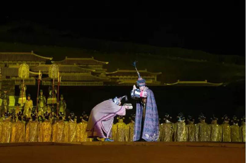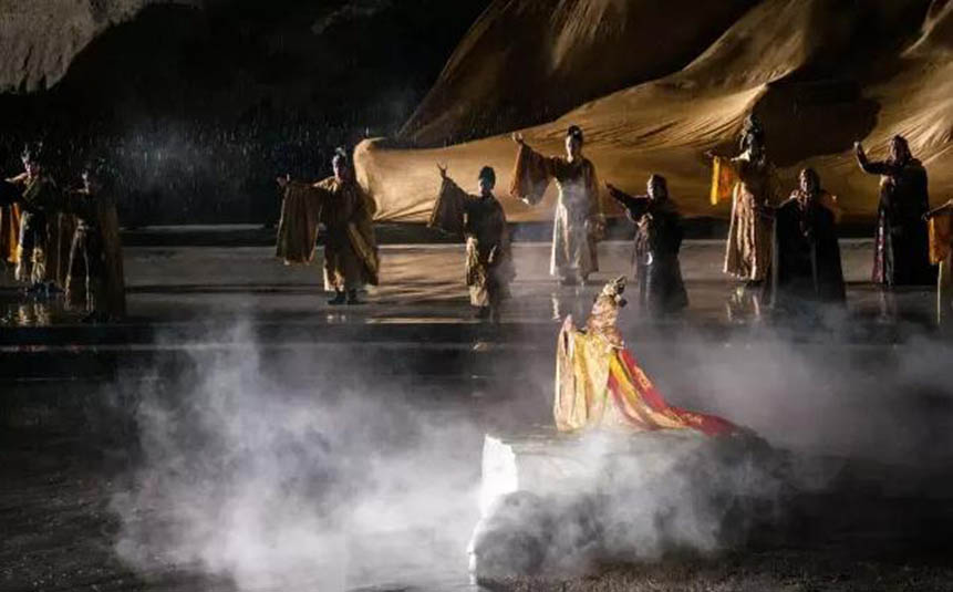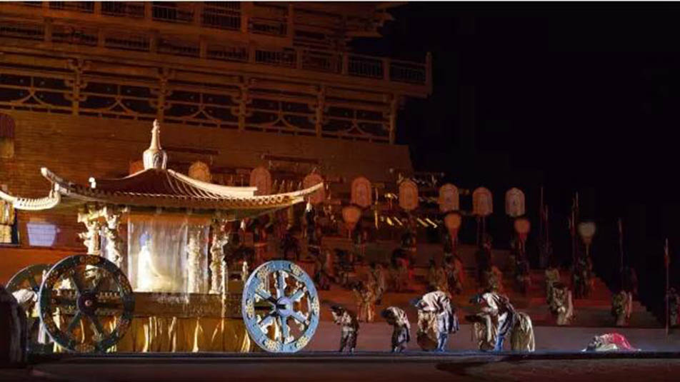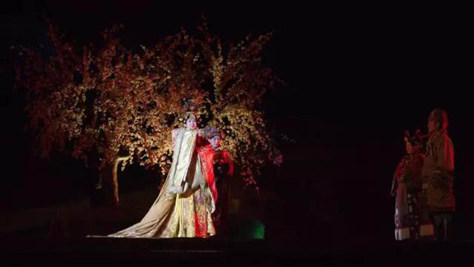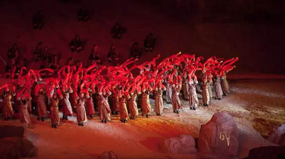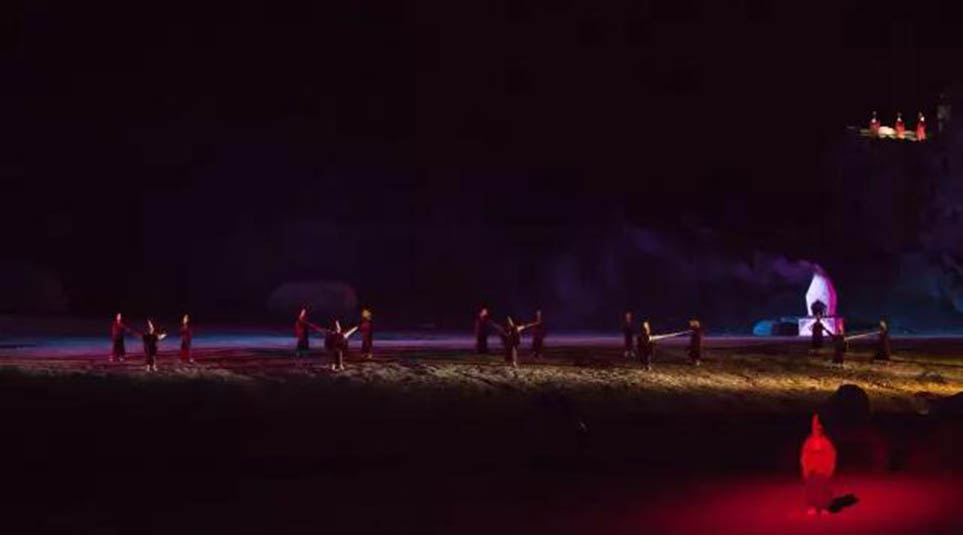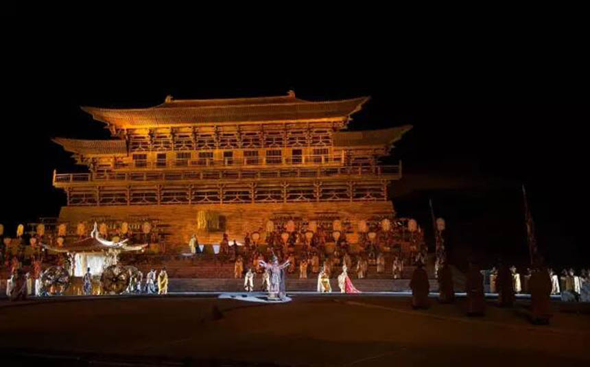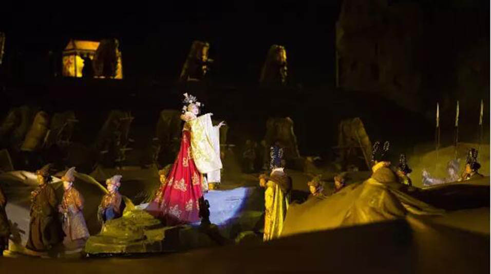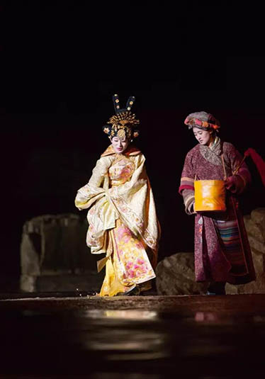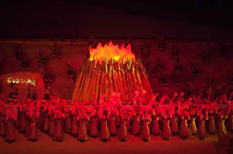 大型藏族實景劇《文成公主》主要講述文成公主入藏歷經艱難的征途和曲折起伏的心路歷程,演繹大唐盛世的愛情傳奇,傳唱漢藏和美的動人史歌。該作品分為“大唐之韻”、“天地梵音”、“藏舞大美”、“藏舞大美”及“藏舞大美”五幕,深度融入漢藏歷史文化、民族風俗、自然景觀等,引入了大唐歌舞和流傳久遠的藏舞、藏戲、佛號念唱等,通過人工舞臺與自然山水的結合,用高科技的手段呈現非物質文化遺產,把戲劇、音樂、舞蹈和現代舞美手段融為一爐,構成華美樂章。