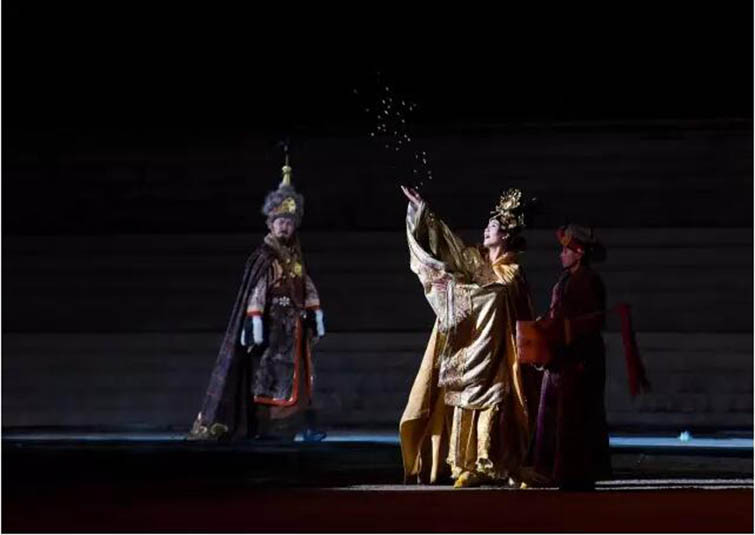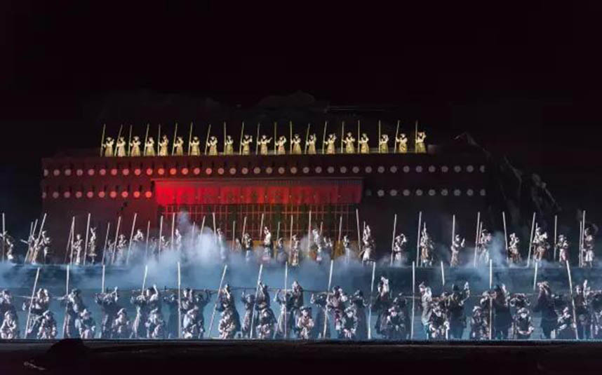 《文成公主》 藏文化大型史詩劇一直在不斷地進行創新和升級,在燈光方面,劇組使用更多元化的色彩,營造出華美而奇幻的舞臺效果,并運用更多的高科技手段,使演出效果更驚艷、更富有傳奇色彩。例如在文成公主碎寶鏡這一段,將通過特殊的舞美燈光設備,將寶鏡摔在地上的場景表現得更逼真,寶鏡碎片飛起來的場景,也能夠通過高科技表現出來,現場感更強。