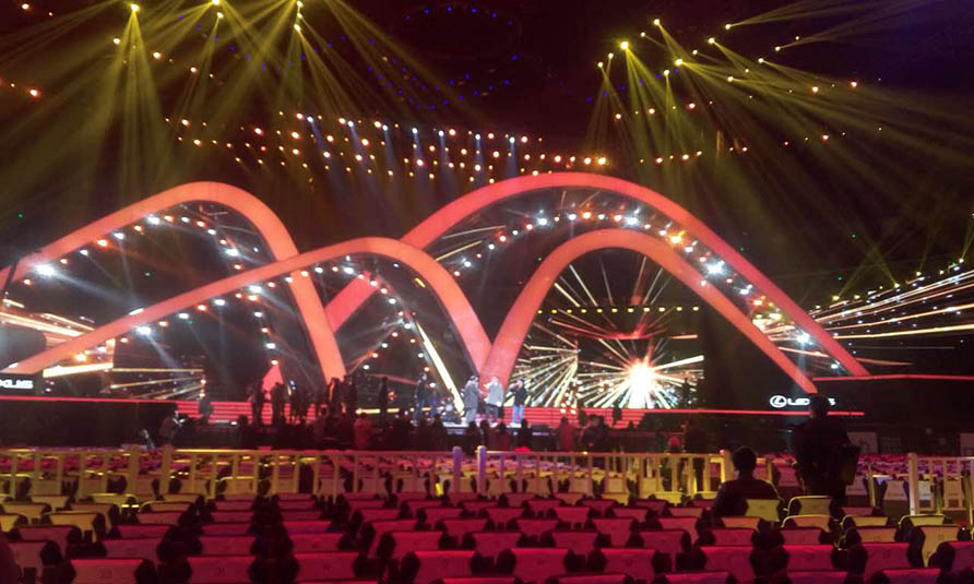 今夜,浩洋電子旗下兩千多臺高品質特寶麗舞臺燈光:三合一全能王G12 HYBRID、G10 HYBRID,光束燈PT320B、PT189B、JT160B,切割燈V3000P,染色燈V2000W-R、 GLW370Z、OK190Z、OK7Q等強大燈光陣容,將震撼獻力五臺跨年晚會,陪著全國人民一起過新年!