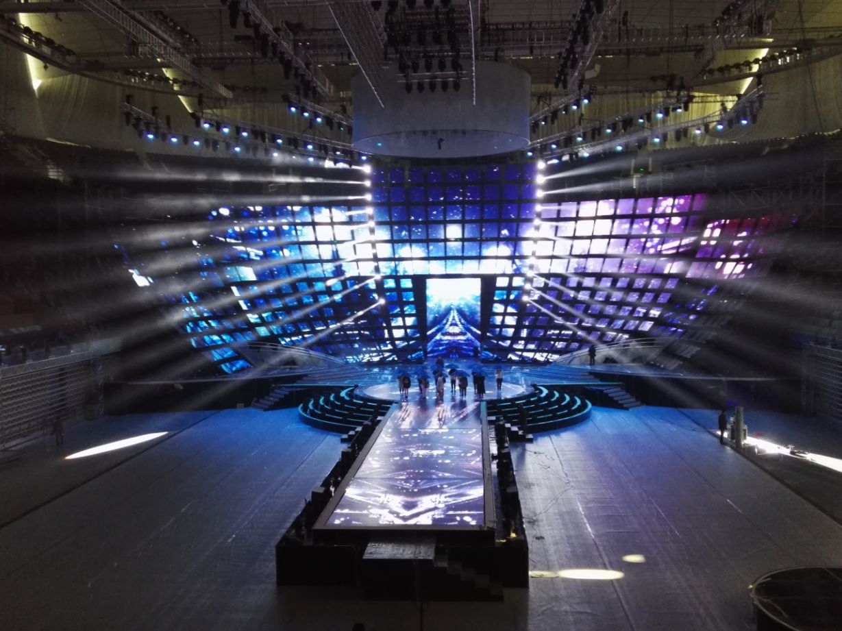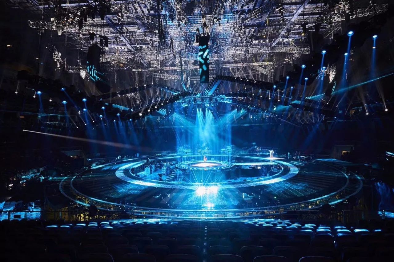追求新亮點的江蘇衛視今年刷新了演唱會舞臺:四面臺升級為360度全景巨型圓舞臺,給觀眾帶來前所未有的視覺沖擊;機械燈臂組成變形空間站,天幕地屏配合猶如浩瀚宇宙。根據比利時的燈光設計師Ignace介紹,去年所有構造和場景都是為扁長型舞臺而設計,今年所有設計都是為了讓觀眾感受到前所未有的一種“沉浸感”,“(每一個區域)觀眾到舞臺距離一致,這和去年有很大的不同,觀眾的感受獨具一格,是宇宙的感覺。”