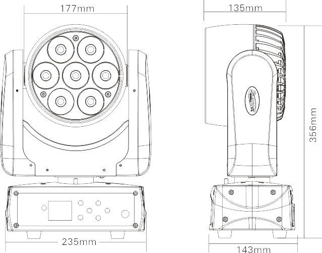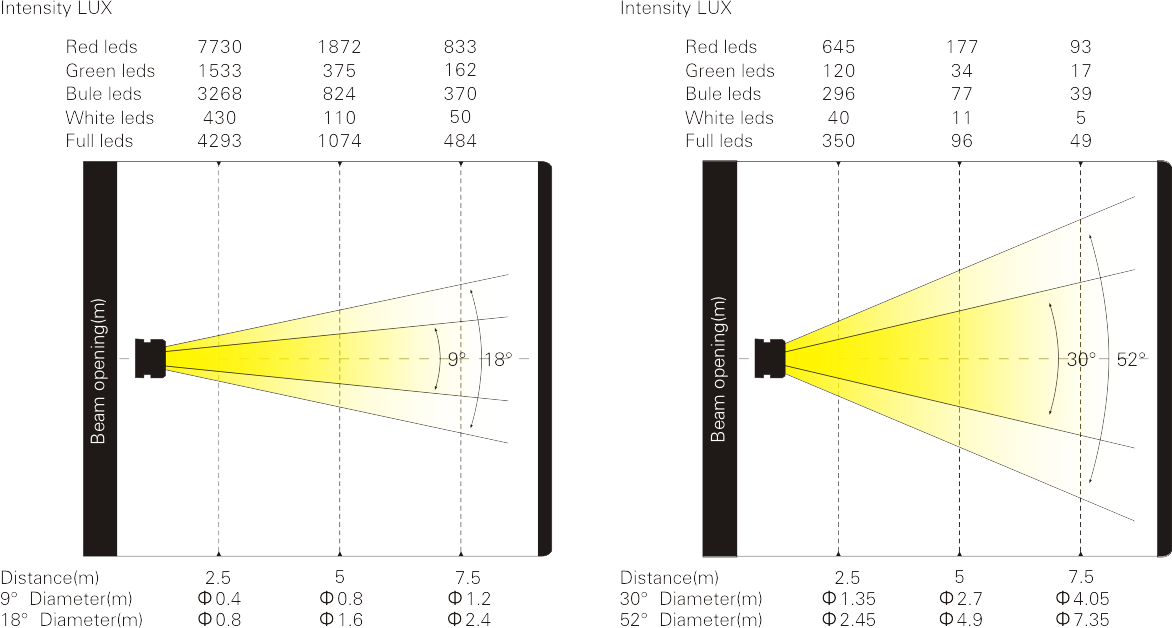 LED類型:7顆15W大功率RGBW 4合1 LED, 達到均勻細膩的混色效果