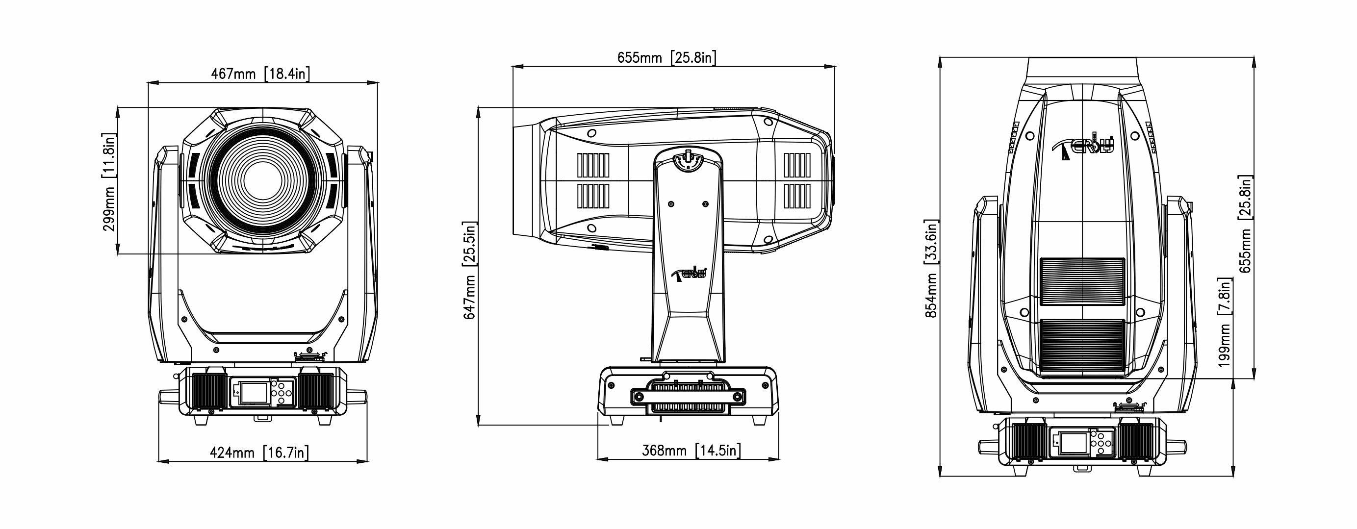 切割盤:一組由4個切角片組成可控制的光斑切角系統,整個切角系統可做90°旋轉