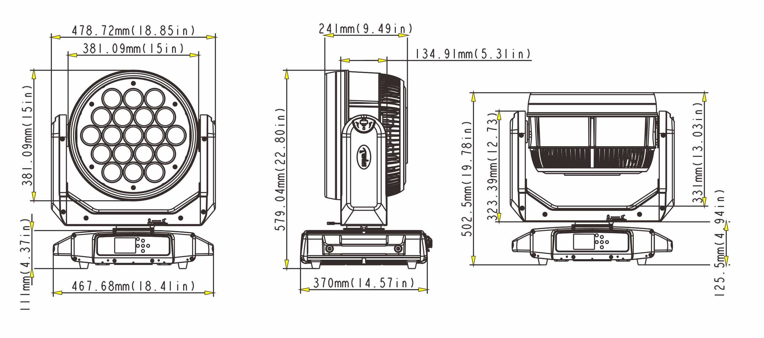 光源:19顆60W大功率RGBW 4合1 LED