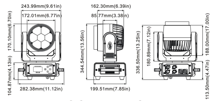 可從控臺完成更改DMX地址碼,機器重設等功能