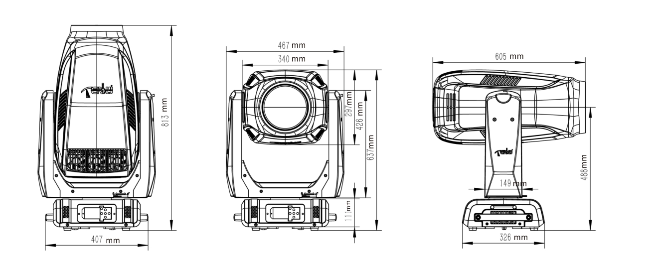 切割盤:一組由4個切角片組成可控制的光斑切角系統,整個切角系統可做±90°旋轉