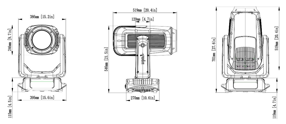 變焦范圍:光束模式:2.3°-28°;圖案模式:5.5°-42°;染色模式:11°-40°