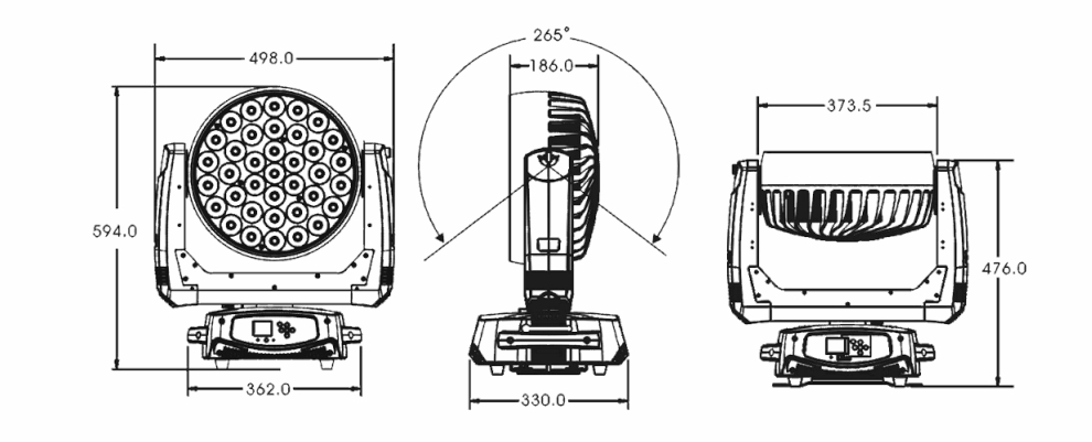光源:37顆15W大功率RGBW 4合1 LED