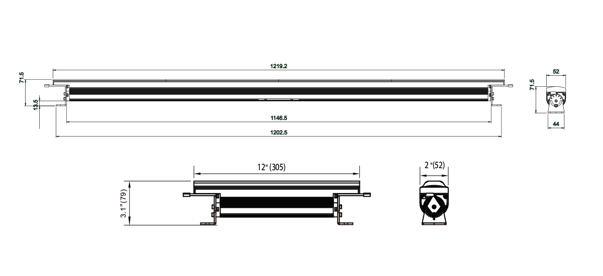 尺寸: 52mmx79mm x 305 mm / 1219.2 mm